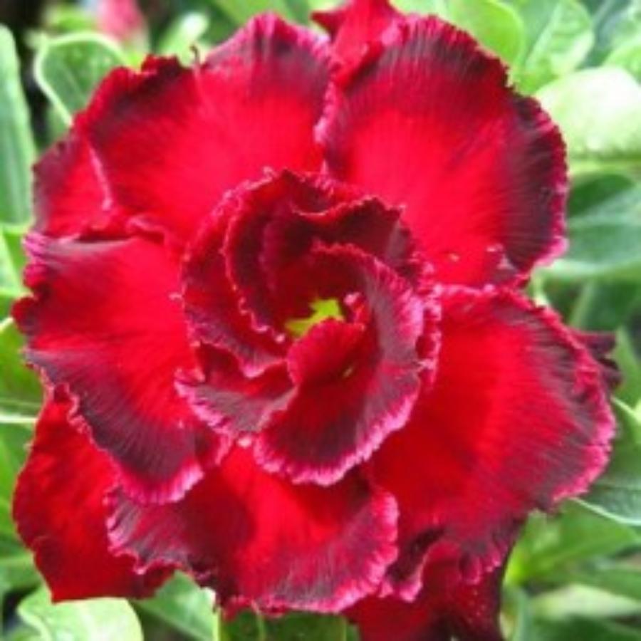 Adenium Rosemarie - быстрорастущее декоративное миниатюрное деревце. Цветки очень крупные, махровые. Внутренние лепестки намного меньше внешних. Окрас цветков насыщенно малиновый с темно-бордовыми полосами. Края лепtстков гофрированные. Сорт предпочитает солнце.