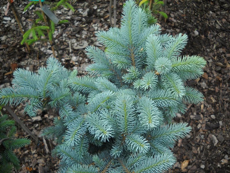 Вырастает крупным, статным деревом, имеющим правильную форму конуса. Его отличает очень медленный рост, только через несколько десятков лет ель достигает 12 м в высоту и 6 м в диаметре. Распростертые в разные стороны ветви растут горизонтально, несколькими ровными ярусами.