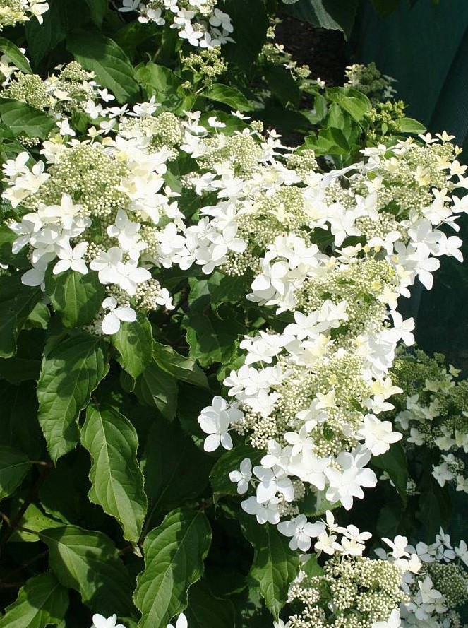 Гортензия метельчатая Magical Starlight – листопадный кустарник правильной округлой формы. И ширина, и высота растения составляет около 1,5-1,8 метров. Подвязки не требует. Побеги толстые красноватого цвета, со временем становятся красно-коричневыми. Листья зеленые, большие эллиптической формы. Соцветия рыхлые, белого цвета, в форме конуса, до 20 см в длину. Нижние цветки напоминают по форме звезды. Период цветения – с середины июня до конца сентября.Высаживается в слабокислые почвы, нуждается в обильном поливе. Используется в контейнерной рассадке и для ландшафтных композиций.
