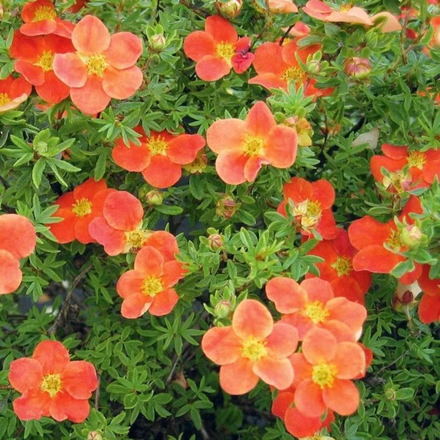 Корни Лапчатки кустарниковой Red Асе может статьи прекрасным дополнением к тротуарной дорожке или частью садовой композиции. Садоводам понравится стелющийся, красивый кустарник, в высоту не превышающий 50-60 см, диаметр 1,2 метра. Густая и компактная крона покрыта мелкими, сложными листочками нежно – зеленого цвета. Летом листва покрывается серебристым ворсом.Цветы, яркие, красивые и крупные-3,5 см, обильно укрывают крону кустарника с июня до августа. Если кустарник растет на солнце - они желтые, в полутени - оранжево-красные. К качеству почвы крупномер Red Асе, неприхотлив, лишь повышенная щелочность почвы приводит к пожелтению листьев. Раз в пару лет рекомендована подрезка, до уровня 10см от земли.