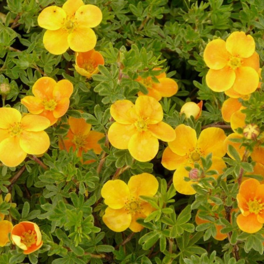Корни лапчатки кустарниковой Tangerine достигают 40–60 см в высоту и столько же в ширину. Пышную крону куста обеспечивают мелкие, но густорастущие, светло-зеленые листочки, около 3 см длиной. Как свойственно всем кустарниковым этого вида, цветет он обильно и долго – с июня и до сентября. В летный период цветения цветочки пастельно-желтые с абрикосовым оттенком, а в осенний – медно–оранжевые, за что кустарник и получил свое название – мандарин. Крупномер Tangerine неприхотлив, лишь от засухи его нужно оберегать, регулярно поливая. Лучшего развития саженец достигает в светлом, но слегка затененном месте.