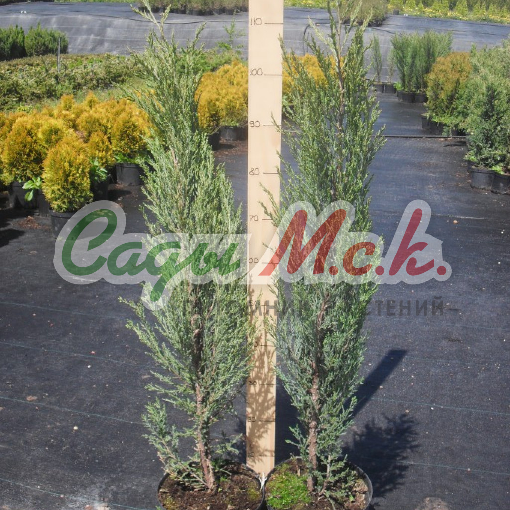 Cамый декоративный голубой скальный можжевельник. Узкий, колонновидный, компактный сорт можжевельника скального. Это растение никогда не станет Вам обузой, чем старше, тем декоративней. Динамика роста: средняя. Побеги жесткие, расположены вертикально, плотно примыкают к стволу. Размер: в возрасте 10 лет достигает 2-3м высоты. Хвоя: голубая, имеет форму чешуек, не колючая. Почва влага: к почвам и влаге не требователен.