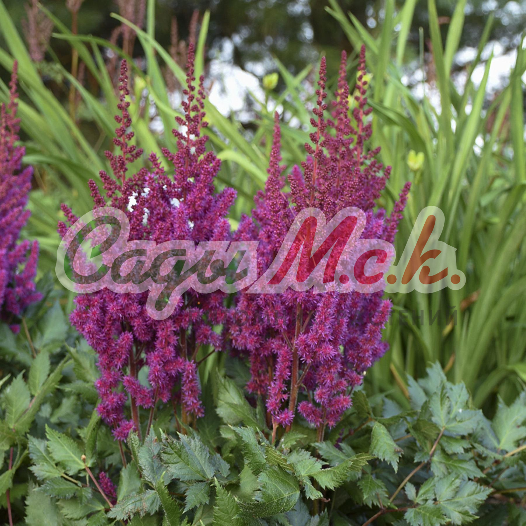 Астильба Арендса Pumila — многолетнее декоративноцветущее растение с плотными малиново-розовыми соцветиями ромбической формы. Образует кустики высотой 15-20 см с прямостоячими стеблями, на которых в августе появляются пышные метельчатые соцветия. Листья ярко-зеленые, имеют сложную форму с зубчатыми краями. <br>
