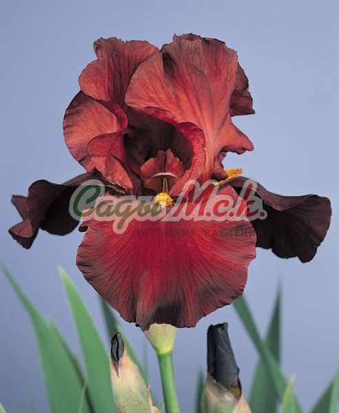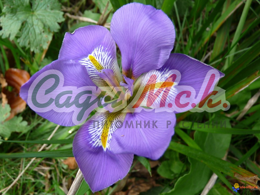 Рассада ириса Acoma относится к высоким бородатым ирисам, известным как пликата, т.е. в которых яркий рисунок располагается на более светлом фоне. Это однократно цветущий ирис, на каждом стебле которого развивается от 5 до 6 бутонов. Нижние доли (фолы) имеют светлый фон цвета слоновой кости и фиолетовые края, мягко переходящие друг в друга. Верхние доли (стандарты) – светло-светло-голубые, вертикально подняты вверх. Бородка – желтая, малозаметная. Верхние и нижние доли слегка гофрированные. Цветение среднее.