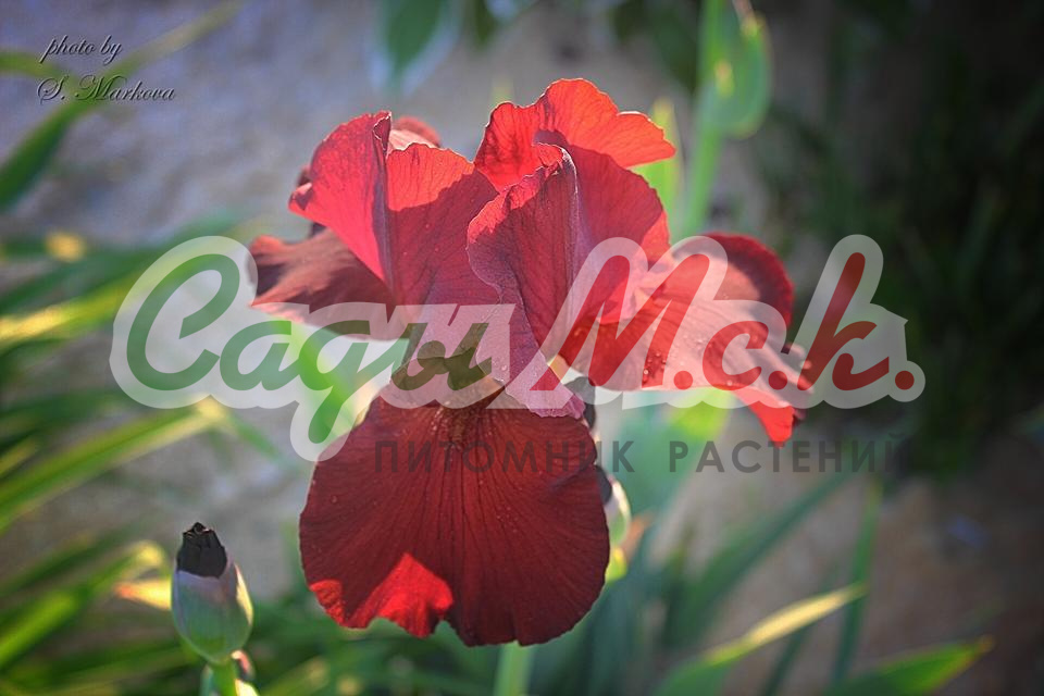 Рассада ириса Almaden относится к ирисам достаточно редкой красной расцветки. Высокий бородатый сорт имеет в высоту до 90 см. Нижние доли (фолы) и верхние доли (стандарты) окрашены одинаково в насыщенный темно-красный, переходящий в красно-каштановый с бархатной структурой или темно-бордовый. Бородка также красно-коричневая, а в верхней части бронзовая с расходящимися от нее белыми лучиками. Верхние и нижние доли - слабо гофрированные Цветение позднее. Сорт известен с 1990 года и не теряет своей популярности.