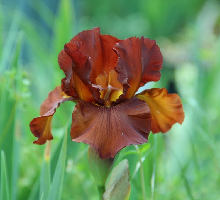 Dutch Chocolate - крупный, парящий. Средне срока цветения. Коктейль из коричневато-красного цвета с медно-шоколадным дало этот восхитительный сияющий оттенок. Бородка бронзовая. Лепестки хорошей текстуры, не выгорают на солнце. Высота цветоноса 85 см.