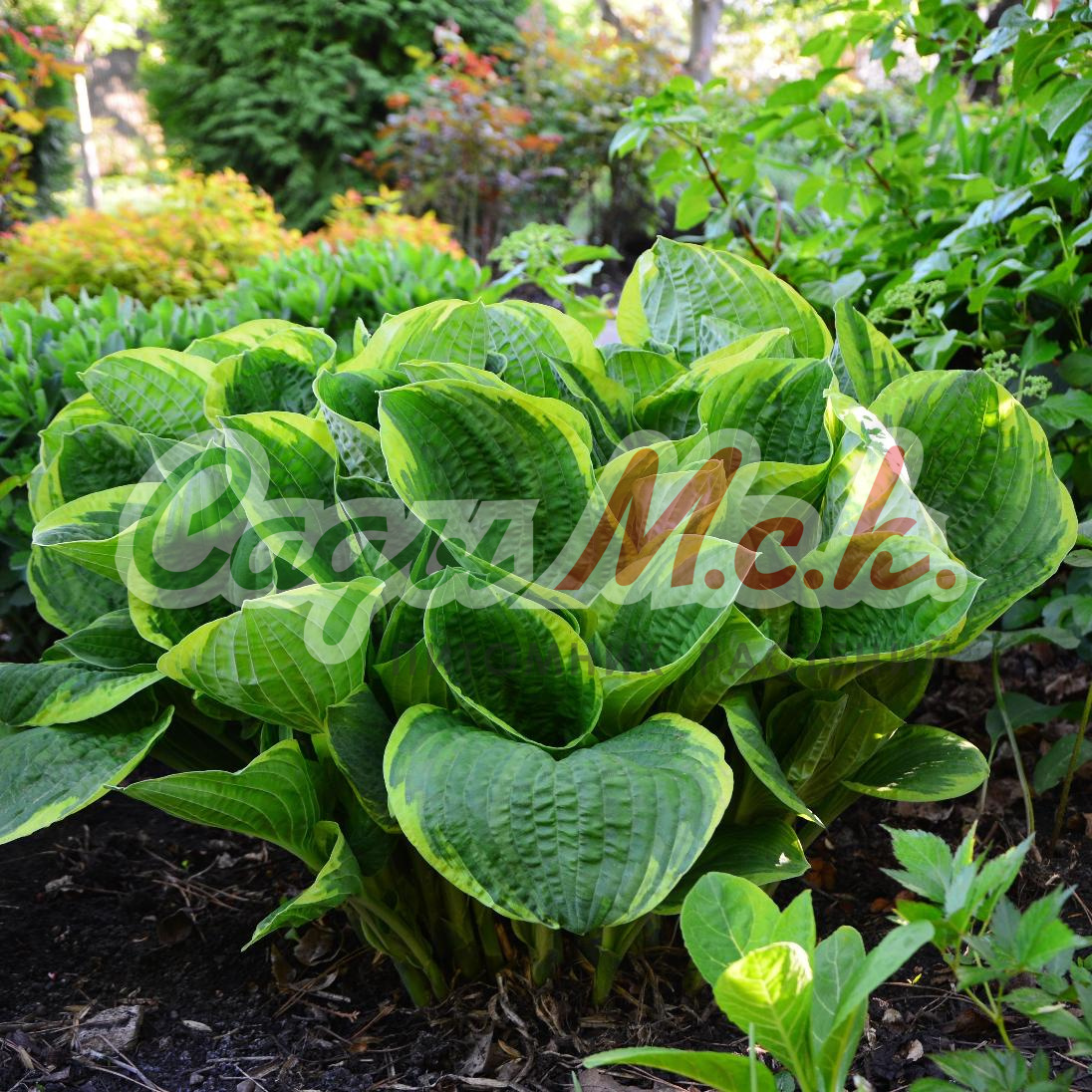 Хоста гибридная Марджиз Эйнджел - высота растения 70 см, диаметр куста во взрослом состоянии 100 см. У данного сорта листья жёлтые с широкой голубовато-сизой каймой.