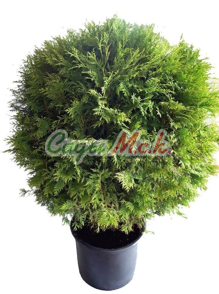 Крона шаровидная, позднее становится более широкой, вырастает в высоту до 1,5 метров в 10 лет. Одна из немногих туй, которая обладает округлояйцевидной формой кроны и достаточным ростом, чтобы выступать в качестве солирующего растения в композициях. Побеги густые, прямые , плоские. Хвоя от темно-зеленой до светло-зеленой. Плоды – маленькие коричневые шишки.